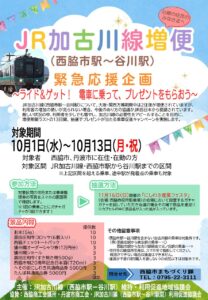 加古川線増便運転終了まであとわずか!! 増便期間のラスト13日間(10/1~13)、加古川線に乗って、 豪華景品をGETしちゃおう!!